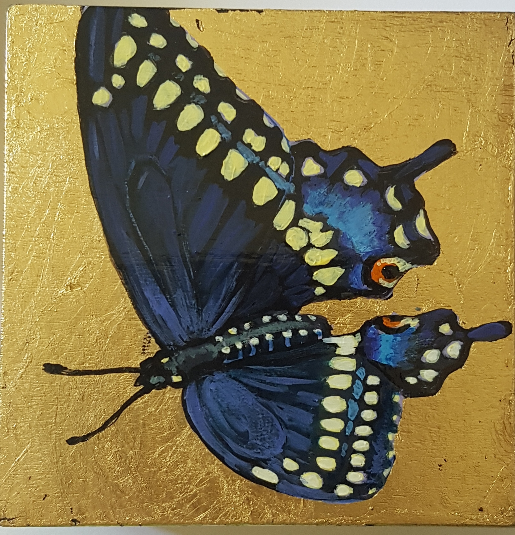 acrylic and leaf gilding on wood, 4″x4″